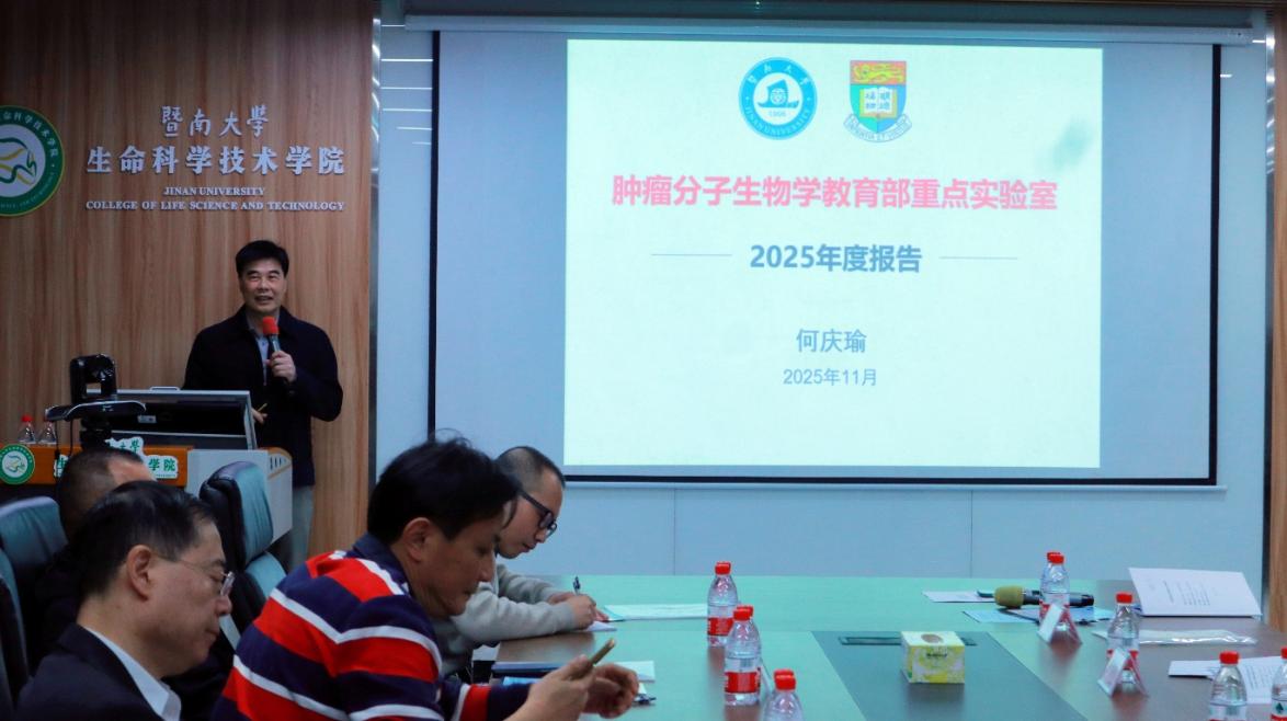 2025年11月28日上午,暨南大学肿瘤分子生物学教育部重点实验室第一届学术委员会第三次会议在生命科学技术学院116会议室顺利召开。暨南大学科技处处长陈填烽教授,生命科学技术学院院长周庆华教授出席并致辞,实验室学术委员会委员何庆瑜教授、姜勇教授、齐众教授、庄诗美教授、康铁邦教授、谢丹教授,重点实验室副主任张灏教授,以及部分科研骨干出席本次会议。会议由重点实验室副主任张志毅研究员主持。